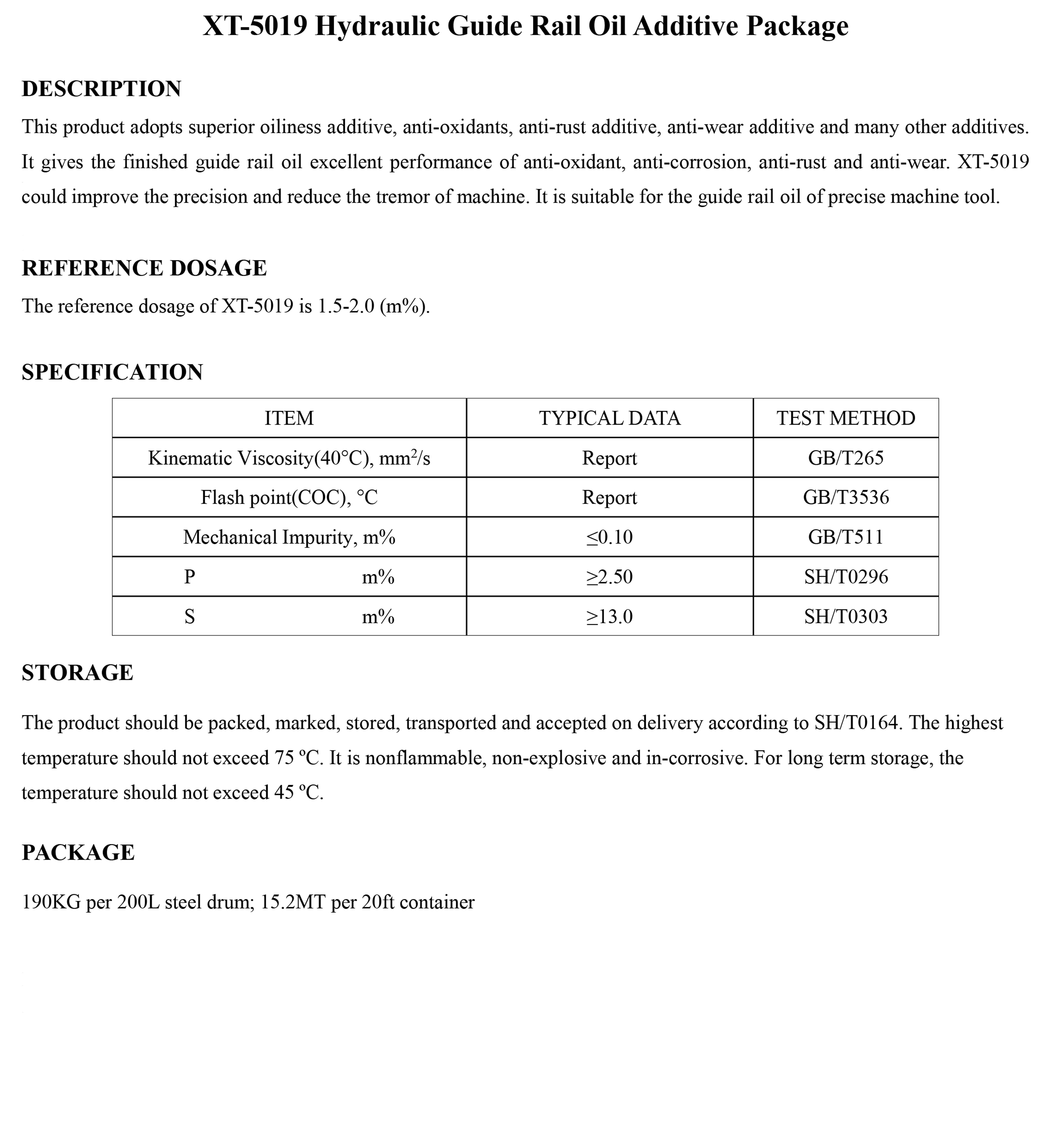 XT-5019 Hydraulic Guide Rail Oil Additive Package-Hydraulic Oil Additive Package-錦州新興石油添加劑有限責(zé)任公司