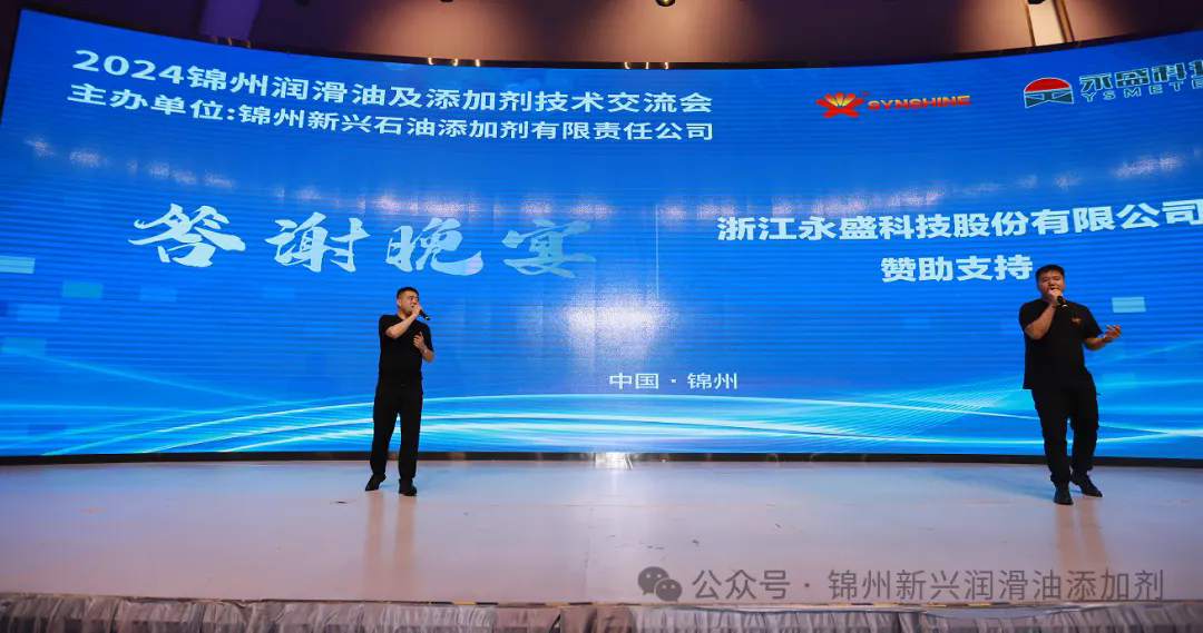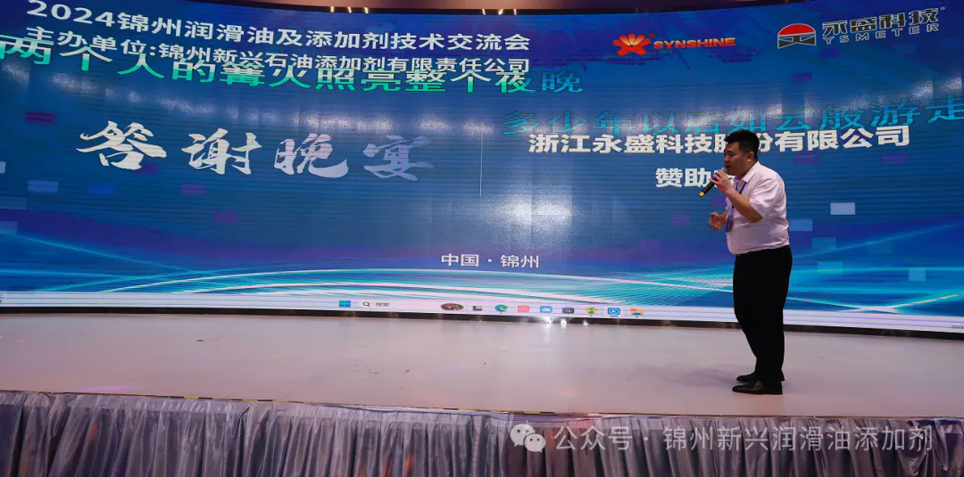 晚宴開(kāi)場(chǎng)由錦州新興石油添加劑有限責(zé)任公司副總經(jīng)理李波致辭,晚宴贊助商浙江永盛科技有限公司銷(xiāo)售總監(jiān)張少明為大家送上了祝福。